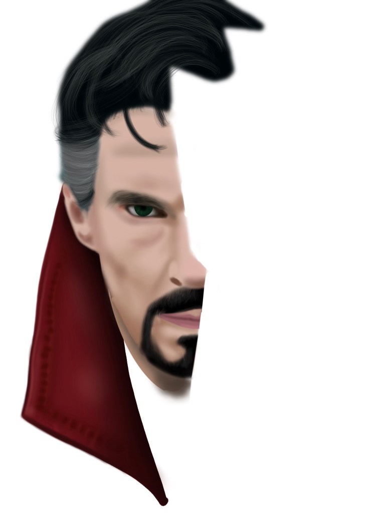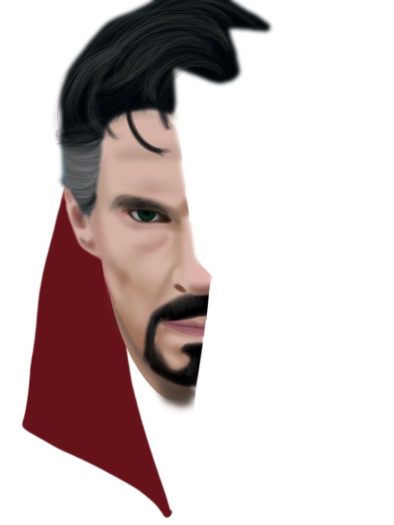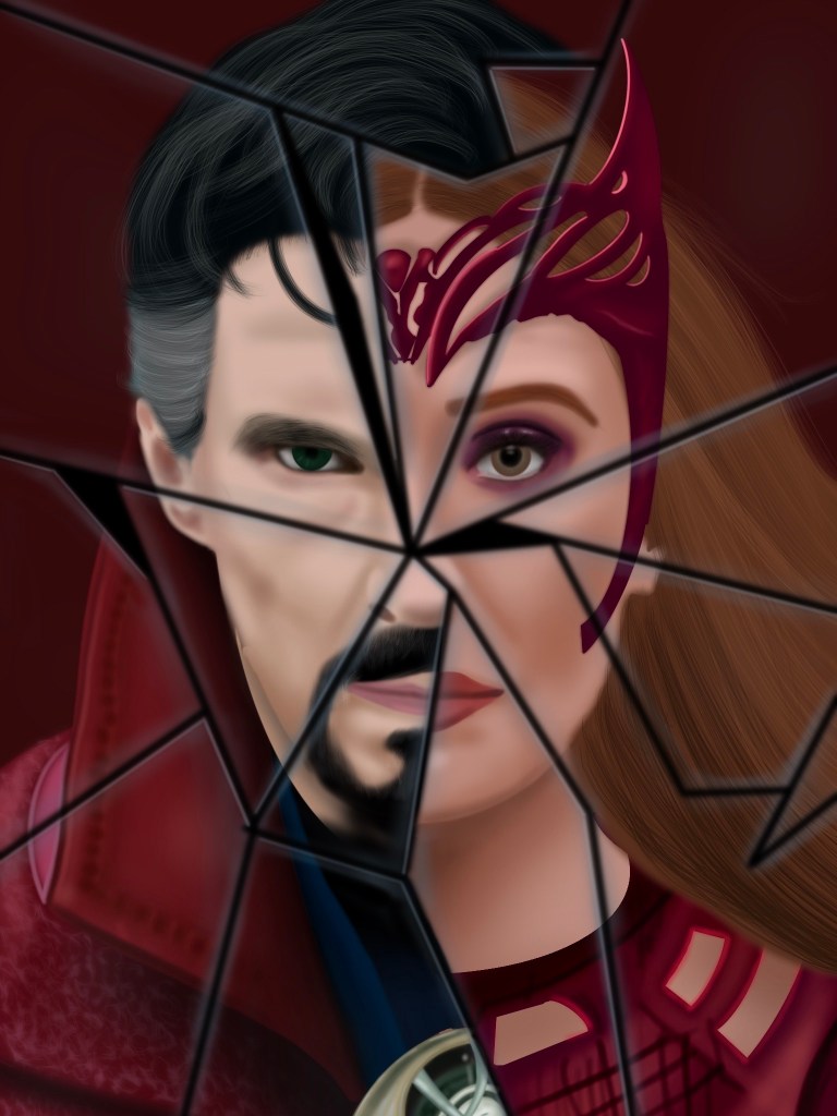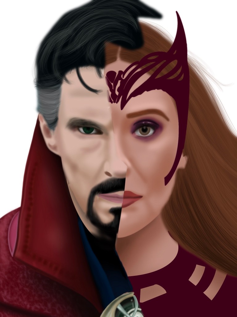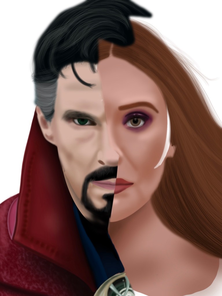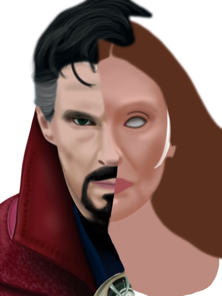 One thing that has been consistent in most of the Doctor Strange posters has been the broken glass theme. The poster I’ve seen most is the one where Doctor strange is surrounded by shards of glass with snippets of the characters within them. When I decided I wanted to have the same affect, I took a picture of Doctor Strange and another of Wanda and separated them in half with jagged lines to get a base for my drawing.
