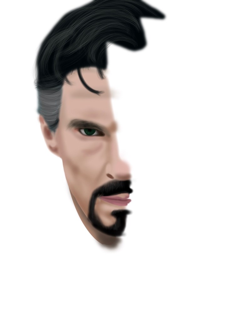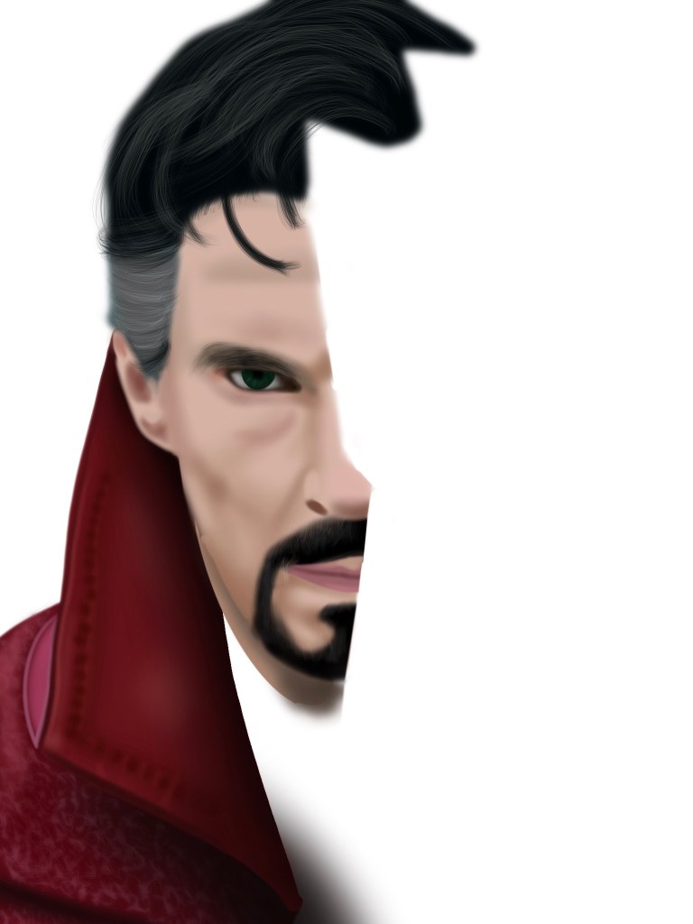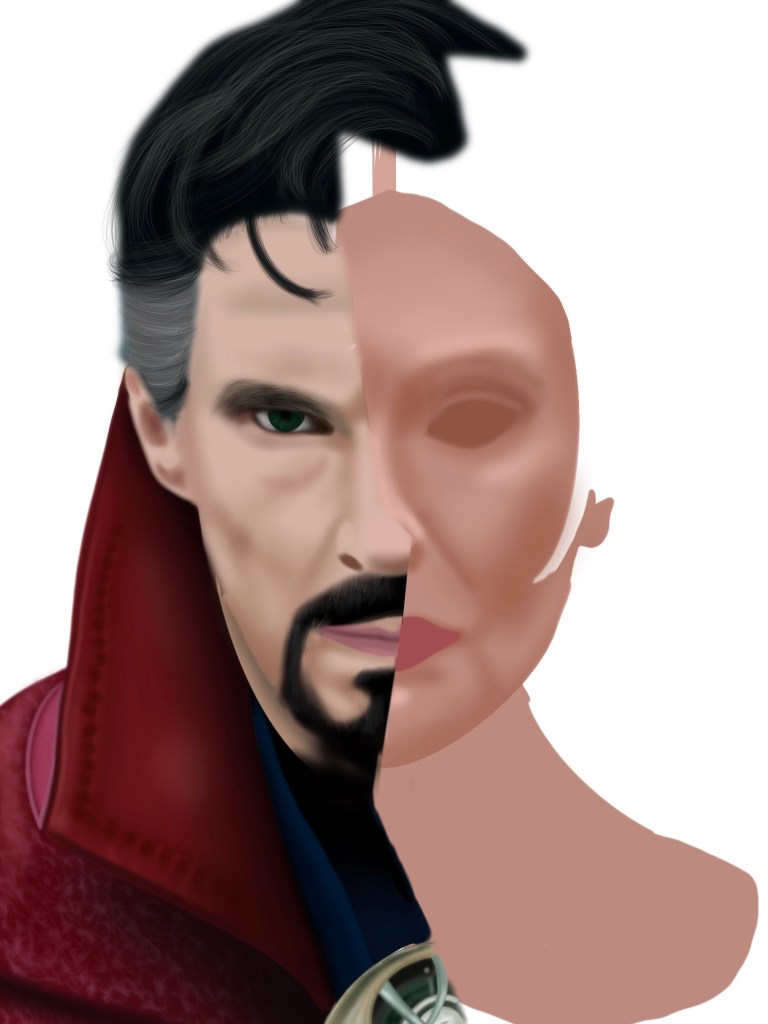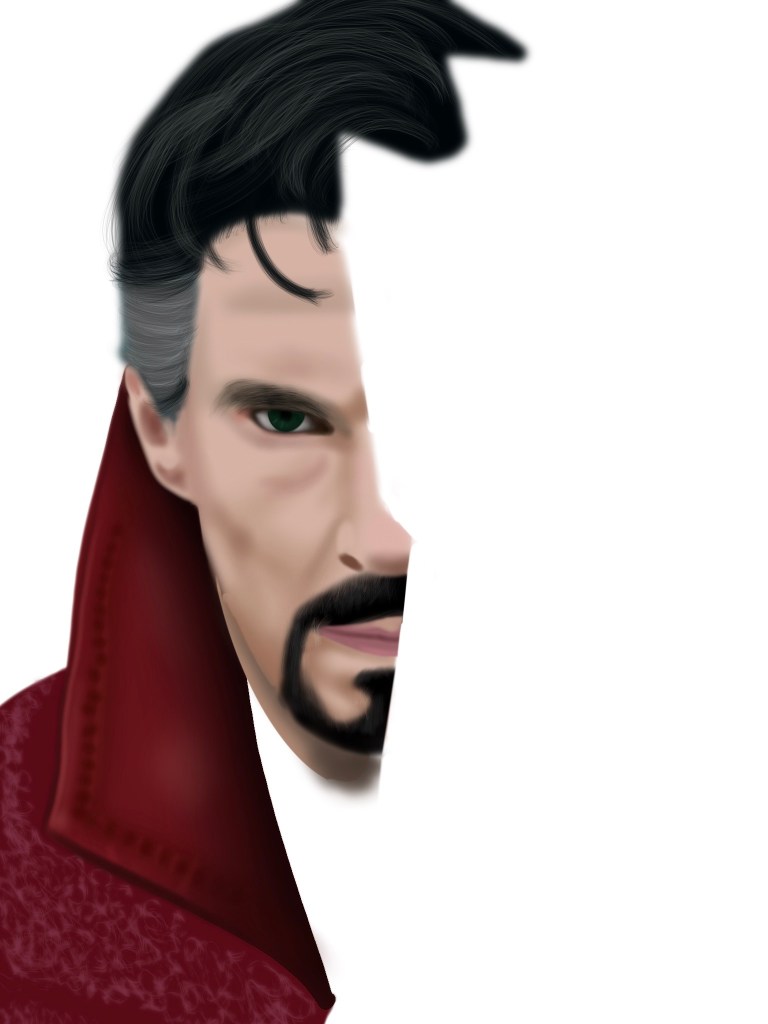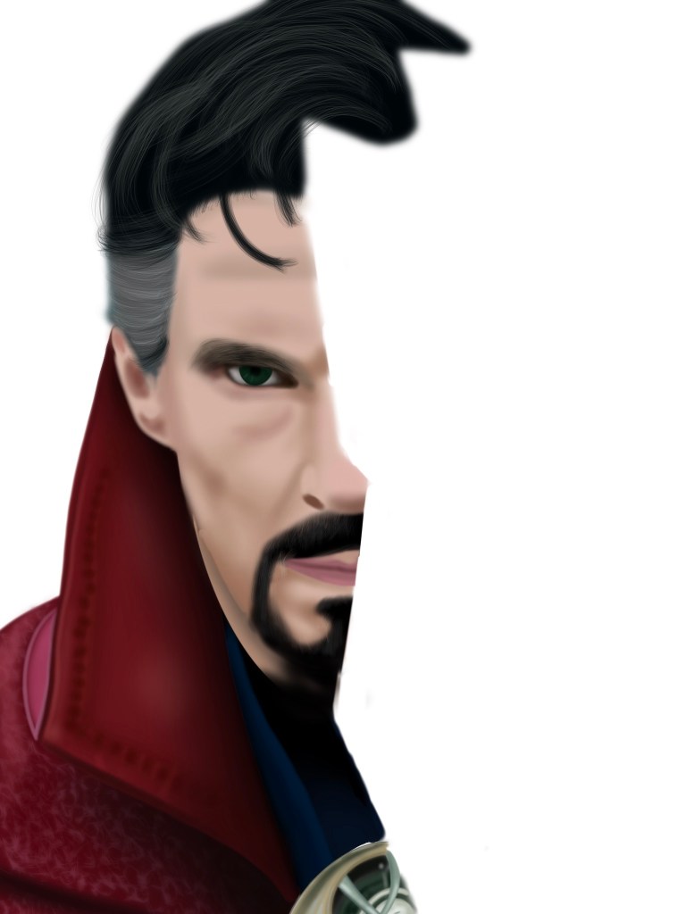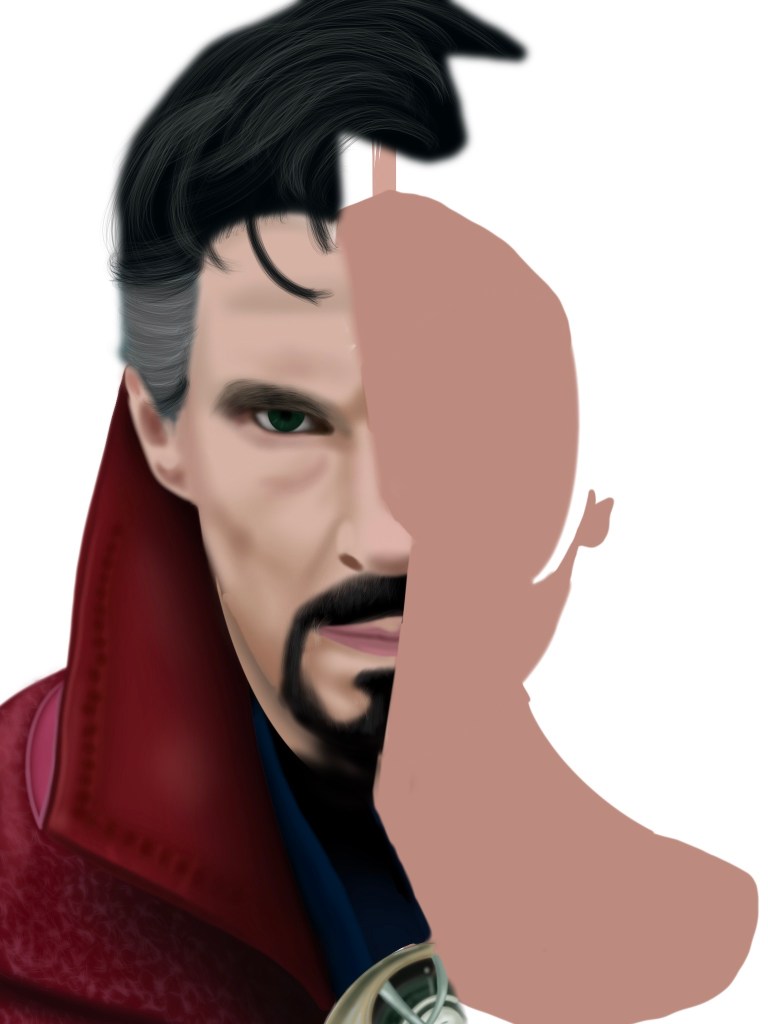 One thing that has been consistent in most of the Doctor Strange posters has been the broken glass theme. The poster I’ve seen most is the one where Doctor strange is surrounded by shards of glass with snippets of the characters within them. When I decided I wanted to have the same affect, I took a picture of Doctor Strange and another of Wanda and separated them in half with jagged lines to get a base for my drawing.