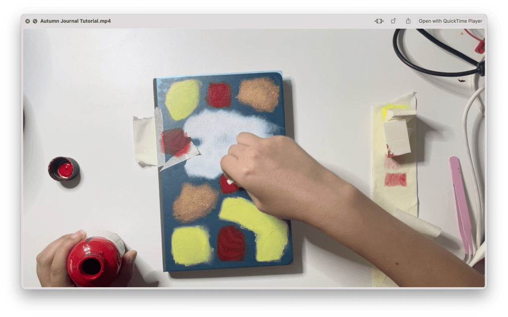 Using a makeup sponge, pick up some of your paint and paint the journal with a stamping motion. With leather paint, it is best to work in thin layers, allowing it to dry in between layers. I started with white followed by pale yellow, then rose gold, then finally fire red. You can use the same sponge for multiple colors by cutting off the edge.