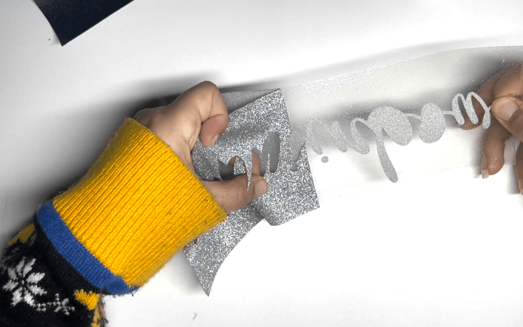 Upload the SVG file. Using the photo reference, estimate how large your file should be. Cut your glitter HTV to the correct size and place it on your cricut mat.