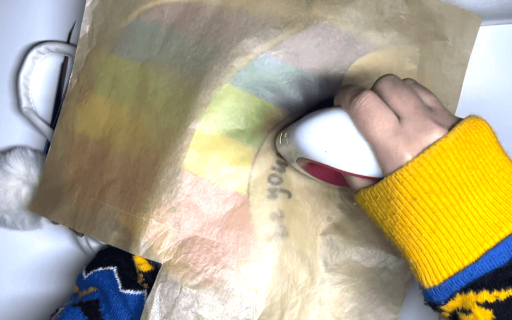 Line up the design, then place a piece of parchment paper above the design for extra protection.