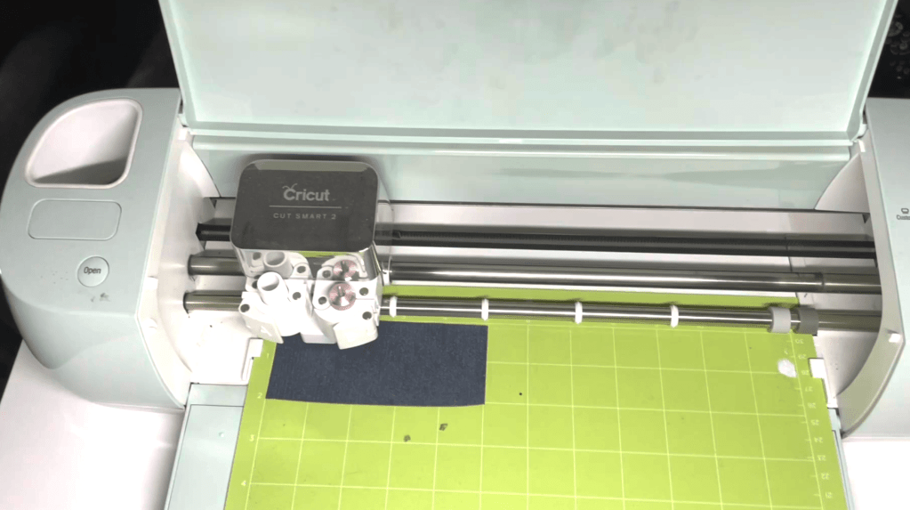 Remember to set the design to mirror. On the custom setting on the cricut dial, set the material to “Glitter HTV” then set the pressure to “MORE”. This will ensure the material cuts through.