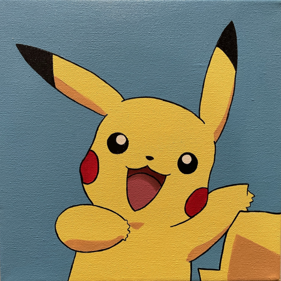 Another recommendation from a friend was to paint Pokemon characters. As someone who only watched the first two movies and played one of the nintendo ds games, but never watched the show very much, I am not familiar with many of the Pokemon. But it’s impossible not to know who Pikachu is, so I decided he would be the first to paint. Pikachi was definitely the easiest of these three characters to paint due to the simple 2-D animated style.